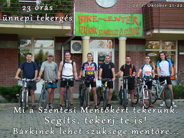 A 23 órás tekergésen Baranyi Antal Gábor, Dudás Lajos, Táborosi Máté, Szabó András, Dandé József, Nagy Henrik, Usztrunul Norbert, Szűcs Zoltán, Hezső Zoltán, Vidovics Lajos alkotta csapat 23 órán keresztül a Szentesi Mentő Alapítványért fog tekerni. A csapat sátránál bárki megtekintheti Baranyi Antal Gábor és Vukovich Sándor előző (római) és ez évi (afrikai) túrájukon készült filmet. Természetesen egy persely is lesz a sátor mellett, amelyen keresztül bárki támogathatja a szentesi mentősök alapítványát.