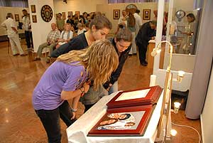 A Szentesi Művelődési Központ Tokácsli Galériájában látható Stekly Zsuzsa Fohászaim című tűzzománc kiállítása.