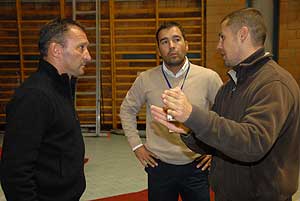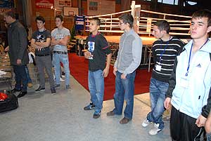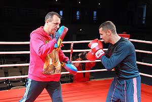 A szentesi Bertók Róbert 11. profi bokszgálájának, a Premiernek tegnap tartották a sajtótájékoztatóval egybekötött nyilvános edzését és mérlegelését. Először Kelemen Balázs, a WBF interkontinentális bajnoka lépett a kötelek közé, árnyékolt és ugrálókötelezett. Őt a főszervező, Bertók Róbert (ellenfele Török Csaba lesz) követte, aki Gál László szegedi edzővel kesztyűzött pár percig.
