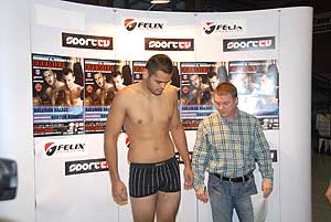 Kelemen Balázs kesztyűzése közben kisebb baleset történt, mert újságunk riporterét állcsúcson ütötte, így a mérkőzése előtt már kiütéssel győzött. Az esetet nézze meg a csatolt videónkon!