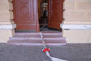 A mostani eset, pedig arról szólt, hogy egy feltételezett tetőtéri tüzet oltsanak, így csak gyakorlat volt a kiszállás. Az elmúlt napokban többször is látható volt megannyi tűzoltóautó a Megyeháza előtt, amikor is mind a három csapat (A,B,C) megismerte az épületet és gyakorolta egy képzelt tűz eloltását.