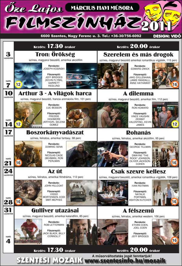 Őze Lajos Filmszínház 6600 Szentes, Nagy Ferenc u. 3. Tel.: 63/312-140
