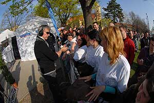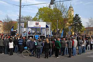 Kora reggel kevesen voltak a Kossuth téren felállított üveg (plexi) stúdió előtt, de ahogy telt-múlt az idő egyre többen jöttek ki, hogy élőben is részesei lehessenek a műsornak.