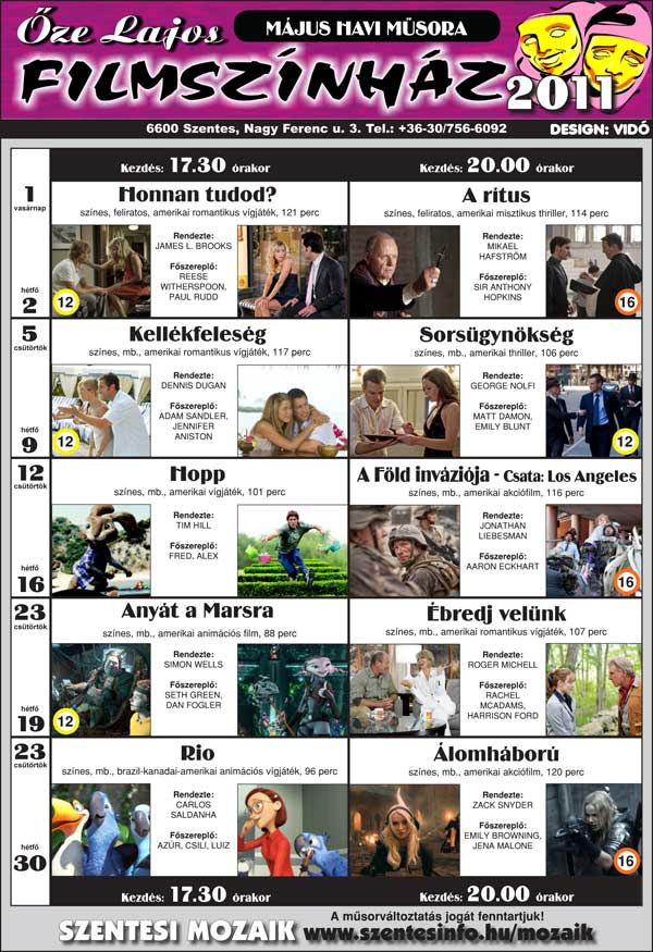 Őze Lajos Filmszínház 6600 Szentes, Nagy Ferenc u. 3. Tel.: 63/312-140