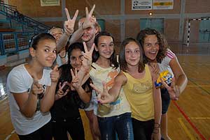 Ezután beindult a fergeteges hangulat a fölsős lányok mazsorettcsoportjával. Sorra léptek fel az osztályok, köztük az újszentesi testvériskola diákjai is, akik már évek óta szereplői a műsornak.