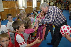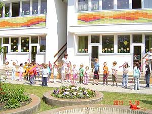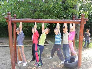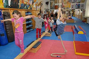A Wellness Colosseumban akadálypályán mozogtak az óvodások, akiket Szűcs Lajos alpolgármester sportfelszerelésekkel és játékokkal ajándékozott meg.