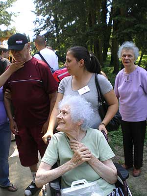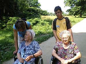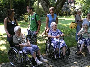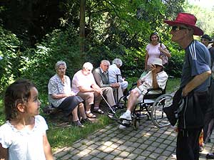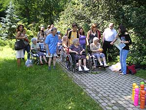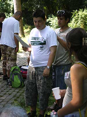 A szemet gyönyörködtető táj és a kényelmes ringatózás után a park fái között is barangoltunk, itt bizony már szükség volt az erőre is, hiszen a testi-lelki feltöltődést némi meglepetéssel tarkítottuk. A kirándulást szellemi és ügyességi vetélkedővel színesítettük: a húsz önkéntes segítségével állomásokat alakítottunk ki az Arborétum területén, ahol a lakók két csapatban versenyezve járták végig a feladatokat, és jól járható, szilárd burkolatú úton ismerkedtek az Arborétummal. Az állomásokon 2-2 diák várta a csapatokat. Volt tekézés, szellemi kvíz, kirakózás, célba dobás és célba lövés vizipisztollyal. Talán nem is kérdés, melyik feladat volt a legnépszerűbb. A kellemes melegben a vizipisztollyal lövöldözött legszívesebben mind a két korosztály.