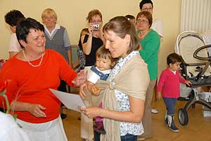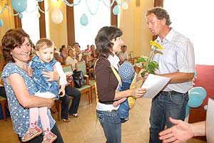 Az anyukáknak az emléklapot Szabó Zoltán képviselő úr, a képviselő-testület szociális bizottságának vezetője adta át, aki köszöntőjében beszámolt saját tapasztalatáról, hogy milyen jótékony hatással van egy gyermek fejlődésére az anyatej. Kisfia 16 hónapig kapott anyatejet és nem volt beteg.