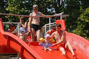 Árnyékban is 37 fok volt, de az tény, hogy a strandolóknak ez kedvezett. Több ezren látogattak ki a strandra, hogy hűsítsék magukat. A strandon a legkedveltebb hely az árnyas fák alja volt, ahová családostul húzódott be mindenki. Egy gyors fürdés, majd újra jöhetett az árnyák. Nagy sikere volt a csúszdának, és érdekes módon senki sem panaszkodott, hogy hideg a medence vize. Mindenkinek jól esett egy kis felüdülés!