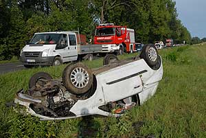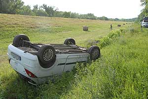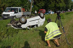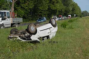 Csongrád felől Szentes felé haladt egy Opel személygépkocsi, amikor az egyenetlen úttesten a jármű vezetője elveszítette uralmát a gépkocsi felett és az útszéli árokba hajtott, majd felborult. Az Opel vezetőjét könnyű sérülésekkel szállították a szentesi kórházba.