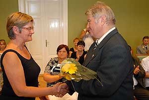 Mészáros Ágnes a Polgármesteri Hivatal szociálpolitikai ügyintézője. 2009-ig az aktív korúakkal kapcsolatos ellátások területén, majd az „Út a munkához" program szervezőjeként kimagasló munkát végzett mind az ügyfelek, mind a munkáltatók megelégedésére. A pályázatírás területén is nagy része volt az idősek otthonával kapcsolatos címzett támogatás, a munkahelyteremtő pályázatok, a kistérségi pályázat szociális területet érintő anyagainak elkészítésében, de több, más területet érintő munkában is közreműködött. Feladatait megbízhatóan, lelkiismeretesen látja el, ügyfelekkel szembeni humánuma példaértékű. Munkájára minden körülmények között, munkaidőn kívül is lehet számítani.