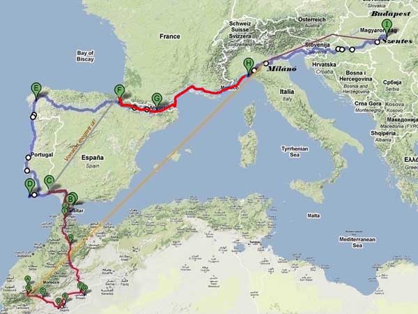 2010. augusztus 14 19:35 "Ma BAGLIASCO a táborhelyem. 153km-t mentem egy német férfival, holnap is velem tart Emilnek hívják. Jó így, nem kell egyedül mennünk. Üdv Toncsi" 2011. augusztus 13 19:40 "111km-t mentem Olaszban vagyok. IMPERIA városban itt kevesebb az ember, mint a franciáknál. Üdv Toncsi." 2011. augusztus 12 20:12 " Ma keveset akartam menni, de így is 137km-t tekertem. Annyi ember van mindenhol, hogy már fáj. Be van építve minden nincs meghagyva a természet. Az emberek tv rádió mozi éttermek szórakoztató helyek nélkül nem tudnának élni. ANTIBES várost elhagyva táborozok." 2011 augusztus 11 20:46 "Teljesen tönkre ment egy kerekem. Így ma csak 91km-t tekertem. LA LONDE-LES-MAURES-nél táborozok. Üdv Toncsi" 2011 augusztus 10 19:45 "Ma kemény napom volt! 143km-t tekertem, MARSEILLE-t elhagytam CASSIS városban táborozok. Eltört egy küllőm holnap megint szerelhetek. Henriket a szerelőmet sokat emlegetem, túl nagy a súly. Üdv Toncsi" 2011 augusztus 9 19:50 "A mai nap láttam sok madár fajt köztük flamingókat is. Próbálom őket megörökíteni. 121 km-t pedáloztam. Egy nemzeti parkban táborozok ALBARON után. N 43.34.160 E 004.31.582" 2011 augusztus 8 21:10 "Ma reggel úgy keltem hogy a három kerékből kettő lapos volt , volt egy kis melóm velük. SETE előtt vagyok 7 és fél kilométerre. 141km-t gurultam, egész nap hátszelem volt plusz sok lejtő segített benne hogy ilyet menjek. Remélem a gyűjtés nem hagyott abba! Üdv Toncsi"