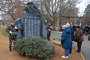 a Széchenyi-liget bejáratánál található II. világháborús emlékműnél.