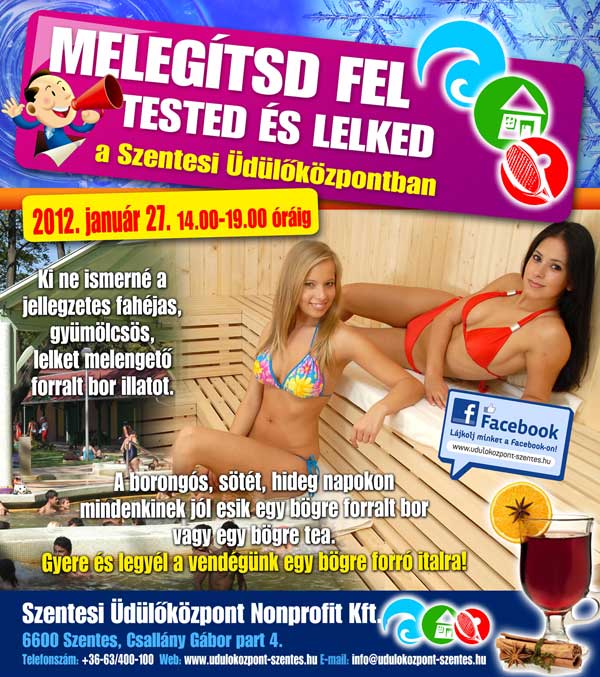Minden melegedőt vár a Szentesi Üdülőközpont 2012. január 27-én 14-19 óra között!