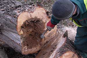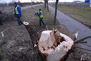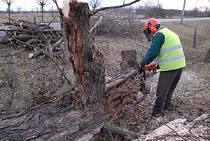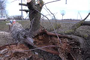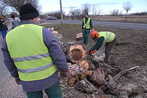 A Tesco utáni részen két korhadt fa veszélyeztette az arra közlekedőket. A képen is látható hogy a cincérek évek alatt jól helyben hagyták szegény fákat, és egy nagyobb szél bármikor kidönthette volna azokat.