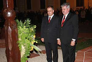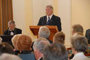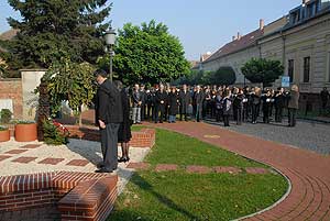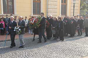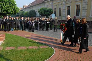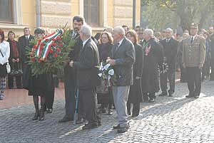 A következő helyszín a megyeháza díszterme volt, ahol előbb Szirbik Imre polgármester szólt az egybegyűltekhez, majd Donáth László evangélikus lelkész, Donáth Ferenc politikus, a Nagy Imre-per másodrendű vádlottjának fia.