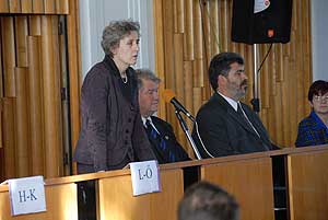Dr. Homoki-Nagy Mária, egyetemi oktató, az SZTE rektor helyettese, a város díszpolgára arról beszélt a diákoknak, a tudás nem csak diplomát jelent, hanem azt is, hogy el fognak tudni igazodni az életben, érteni fogják, miről szól Európa s a jövő, amiben a város is szeretné őket segíteni.