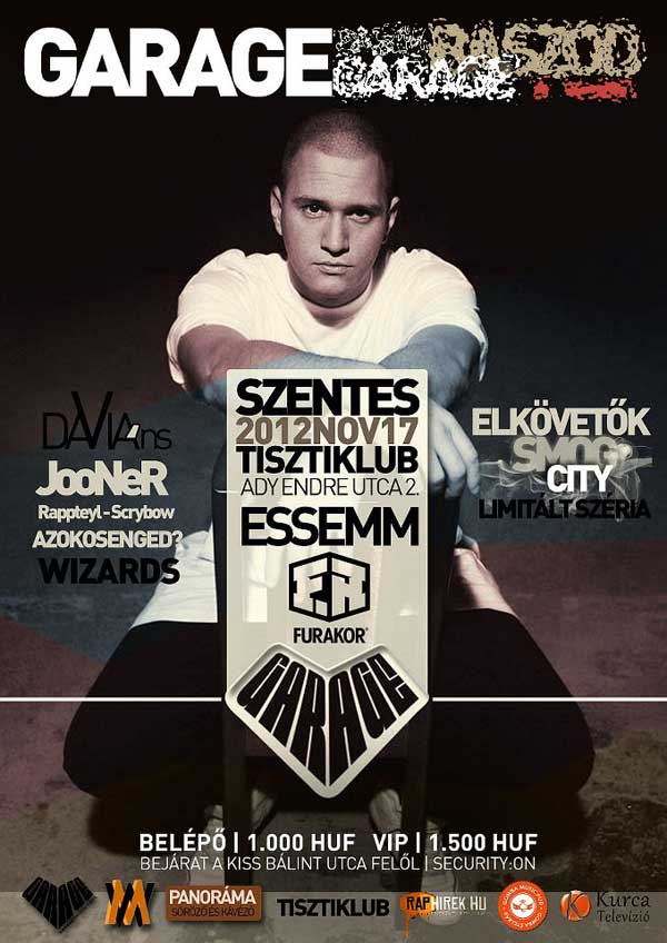 Szentesen ismét jól szórakozhatnak a vájt fülű Hip-Hop kultúra képviselői. A dátum és infók röviden: 2012. november 17. 22:00 óra, ESSEM, Furakor, Garage Prod. Azoknak sem kell csüggedniük, akik messziről érkeznek, ugyanis a szervezők hatékony munkájának köszönhetően INGYENES szállás lehetőséget biztosítanak! Szentes, 2012. 10. 25. |