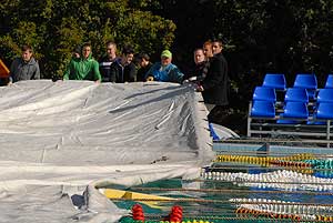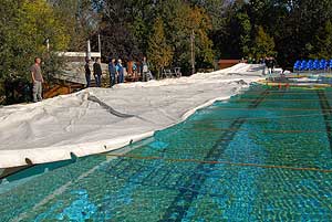2012. október 8-án kezdték meg a ligeti strand 25-ös és 33-as medencéjének sátorállítását. Diákok, civil és sportegyesületek tagjai segédkeztek az Üdülőközpont munkatársainak a sátor állításban. Minden résztvevőnek köszöni a segítséget a vezetőség!