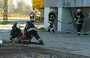 A gyakorlati szituáció szerint egy szikáncsi házban ketten rosszul lettek, így őket, illetve a társaság telephelyén történt balesetben megsérülteket a az Országos Mentőszolgálat munkatársai láttak el, és szállították kórházba. A környezetvédelmi felügyelőség gondoskodott az oltás során szennyeződött oltóvíz megfelelő kezeléséről, míg a népegészségügy munkatársának javaslata alapján határoztak, hogy a lakosságot tájékoztassák, milyen később fellépő tünetek esetén forduljanak feltétlenül orvoshoz.
