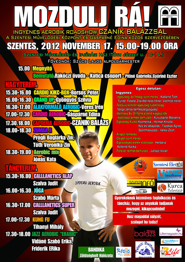 Ingyenes aerobik roadshow állomása érkezik Szentesre 2012. november 17-én. Minden érdeklődőt várnak az Ifjúsági Házba.