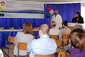 A projekt keretében a szentesi Csongrád Megyei Dr. Bugyi István Kórház Mozgásszervi rehabilitációs konferenciát és képzést rendezett. A konferencia és képzés a Magyarország-Románia Határon Átnyúló Együttműködési Program 2007-2013 keretében, az Európai Regionális Fejlesztési Alapon keresztül az Európai Unió társfinanszírozásával valósult meg 2012. október 15. és 19. között Szentesen. A konferencia Dr. Várkonyi Katalin főigazgató kétnyelvű szakmai összefoglalójával és köszöntőjével kezdődött, melyben a szentesi rehabilitációs tapasztalatokat foglalta össze. Majd Dr. Zsoldos Gábor főorvos a rehabilitáció fogalmáról, szemléletéről és célkitűzéseiről beszélt. Ezt követően Dr. Balázs Éva főorvos a fogyatékosságról, Keller Bianka gyógytornász az elektroterápiáról a rehabilitációban, Tóth Csilla Andrea gyógytornász a gyógytorna a rehabilitációban témakörről szólt. A konferencián a zsombolyai partner részéről Dr. Ferdean Nicolae Cristian a traumatológia, az ortopédia és a rehabilitáció kapcsolatának témakörében tartott előadást.