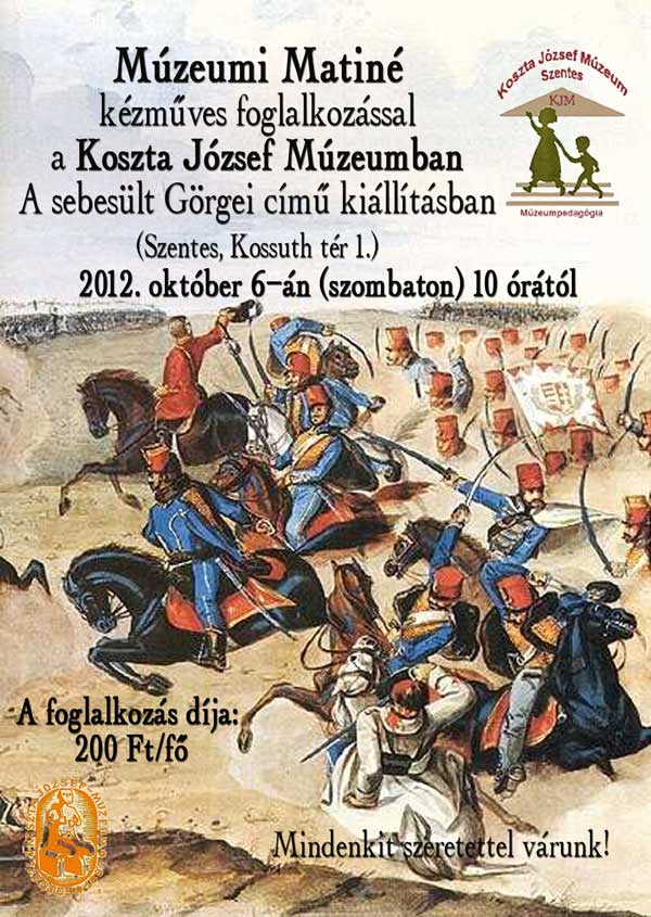 2012. október 6-án Múzeumi Matinéra várnak minden érdeklődőt a Koszta J. Múzeumba a Sebesült Görgei című kiállításra. A múzeumi foglalkozás 10.00 órakor kezdődik.