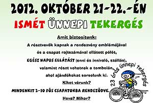 2012. október 21-22-én ismét Ünnepi Tekergésre várnak minden sportbarátot. 2-10 fős csapatok jelentkezését várják október 12-ig a Szentesi Családsegítő Központban!