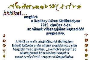 2012. október 4-én az Állatok Világnapjához kapcsolódóan ááállati jó programja várnak minden érdeklődőt a Csallány Gábor Kiállítóhelyre.