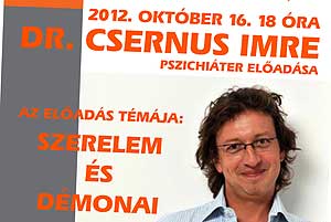 2012. október 16-án Dr. Csernus Imre pszichiáter előadására megtelt a Megyeháza Konferencia és Kulturális Központ díszterme de még a szomszédos Zöld teremben is sokan hallgatták a szerelemről és annak démonairól szóló előadást.