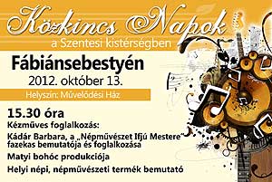 Fábiánsebestyénen indul a „Közkincs Napok a Szentesi Kistérségben” elnevezésű kulturális programsorozat. A 2012. október és 2013. március között megvalósuló rendezvénysorozat a kistérség nyolc településén, egy-egy kulturális találkozót fog össze egységes programmá. A fellépők amatőr kulturális csoportok lesznek. A műsorokat minden alkalommal kézműves foglalkozások, illetve képző- és iparművészeti tárlat is kíséri.
