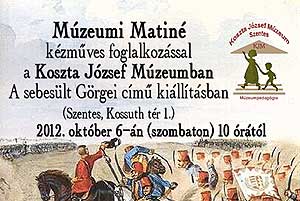 2012. október 6-án Múzeumi Matinéra várnak minden érdeklődőt a Koszta J. Múzeumba a Sebesült Görgei című kiállításra. A múzeumi foglalkozás 10.00 órakor kezdődik.