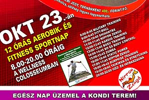 2012. október 23-án reggel 8-tól este 8-ig dübörgött a Wellness Colosseum. A 12 órás Aerobik és Fitnesz napon 12 edzésstílust próbálhatott ki a több száz tornázó, de a sláger egyértelműen itt is a szentesi szabadalom, a Nippon Zengo volt.