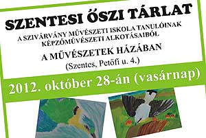 Program: 10.00 óra Versek és dalok a Szivárvány AMI tanulóinak előadásában A tárlatot megnyitja Szemerédi András a Koszta József Általános Iskola igazgatója 10.30 óra Nyitott művészeti nap (szobrászat, üvegművészet, nemezkészítés, festészet) A kiállítás megtekinthető: 2012. november 30-ig. A rendezvényen a részvétel ingyenes!