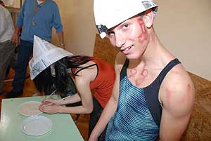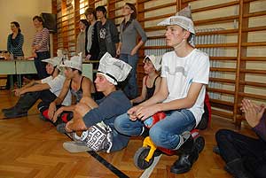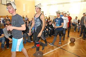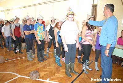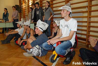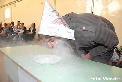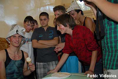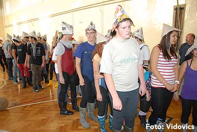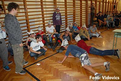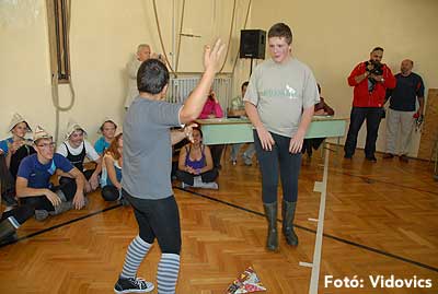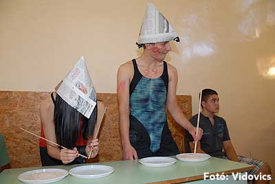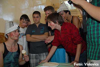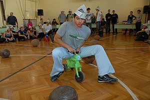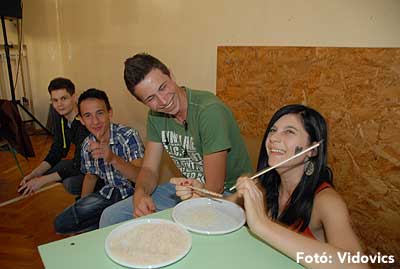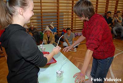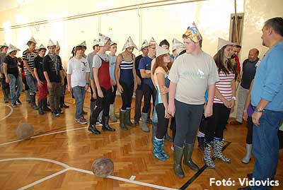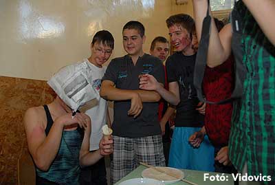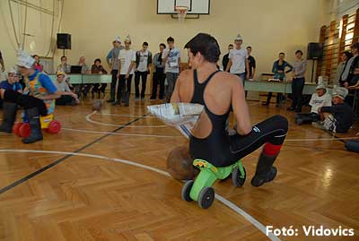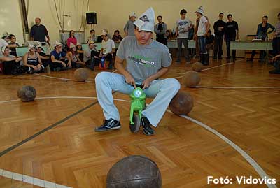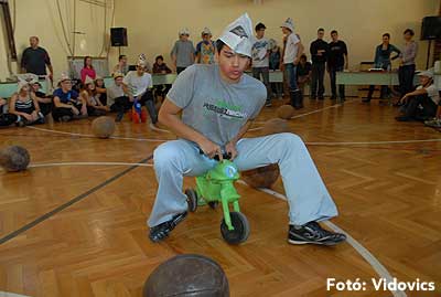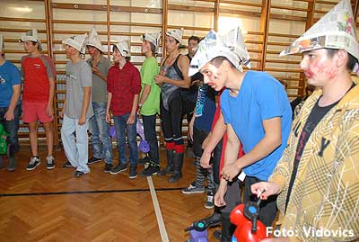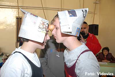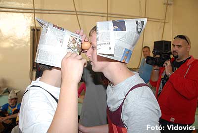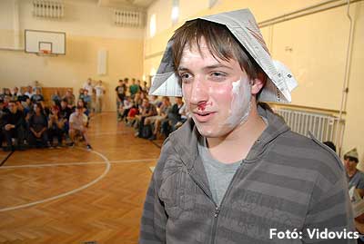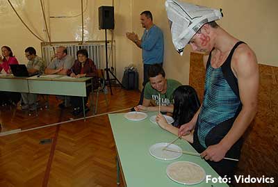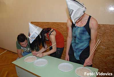 Ezek után jöttek sorra a feladatok. Kismotorral való szlalomozás, tojáshordozás homlokkal, fűszerfelismerés egy szippantással .... Természetesen a lisztfújás sem maradhatott ki a sorból.