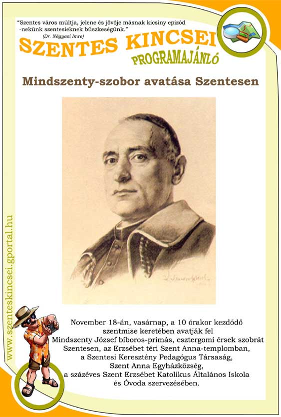 Szentes Kincsei programajánló Mindszenty-szobor avatása Szentesen