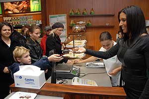 A Norbi Update termékek rajongói együtt fényképezkedhettek Rubint Rékával, és a szerencsésebbeket ő kínálta a különleges tortával.