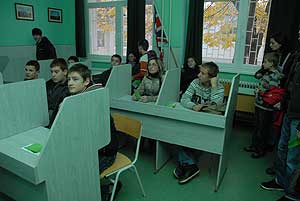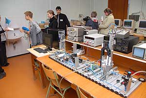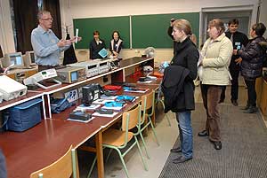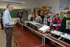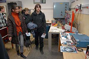 Az elektronikai képzésről Sztanó Bálint számolt be az elektronikai laborban. A megújult idegen nyelvi képzést Török Edit angol szakos tanárnő ismertette a nyelvi laborban.