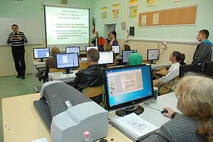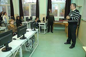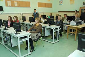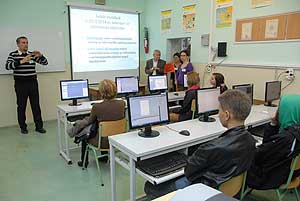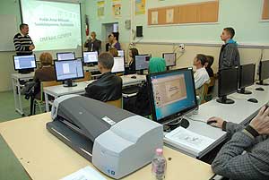 Ezt követően az iskolában folyó képzésekről azok helyszínein tájékozódtak a látogatók. Az informatika oktatásról, ezen belül a multimédiás és emelt szintű informatika szakos osztályok munkájáról a legújabb és legkorszerűbb informatika teremben tartott előadást Pásztor Zoltán tanár úr.