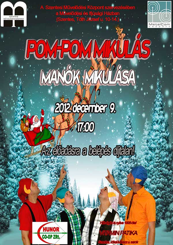 Idén is egy új műsorral jelentkezik a Pom-Pom együttes a Pom-Pom Mikuláson. A műsor címe: Manók Mikulása. Természetesen új történet, új szereplők, és új Mikulás dalok várják a gyermekeket. A támogatóknak köszönhetően a Művelődési Központ nemcsak egy műsorral, hanem egy-egy szerény Mikulás csomaggal is meglepi az Ifjúsági Házba látogató gyermekeket.