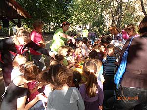 A zöld ünnep délelőttjén birtokba vették a Széchenyi-ligetet. Különböző helyszíneken állatokhoz kapcsolódó játékos feladatokat oldottak meg a gyerekek, délután pedig a szülőket közös barkácsolásra hívták az óvoda udvarára. Gesztenyéből készültek állatfigurák, füzérek, papírból készítettek hattyút, rókát, mókust. A közös barkács délutánnak ismételten nagy sikere volt.