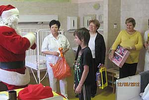 Ez alkalomból az Önkormányzat ajándékát is elszállította az osztálynak, melyben rengeteg játék volt. Az osztályon fekvő 7 kis beteg nagyon örült, a Mikulásnak, aki varázslatokkal szórakoztatta őket. Pl. az egyik vakbél gyanúval bekerült fiú jól szórakozott, mikor a Mikulás egy grillcsirkét varázsolt neki, és mivel ő diétán volt ezért mindezt törülközőből készítette el. 2012. december 6-án délelőtt hangos kacagás hallatszódott ki a kórtermekből, ahol a Mikulás járt. A kórház is gondolt a gyerkőcökre, akiknek ezt az ünnepet bent kellett töltenie ezért minden osztályon fekvő gyermek egy-egy plüss állatkát kapott, hogy jó emlékekkel hagyják el a kórházat.