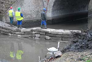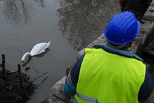 Az építőket meglátogatta egy hattyú is, aki érdeklődve figyelte a munkálatokat. Egy kis morzsa után tovább is állt, hogy jelenlétével ne akadályozza a munkálatokat.