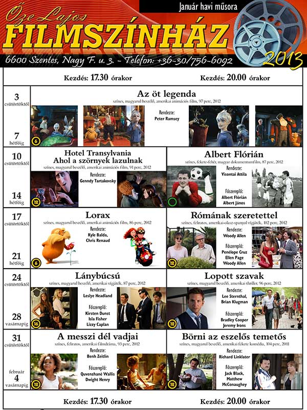 Őze Lajos Filmszínház 6600 Szentes, Nagy Ferenc u. 3. Tel.: +36-30/756-6092