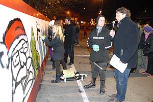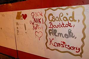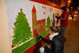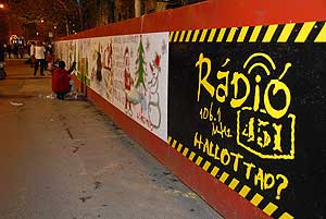 A Rádió 451 stábja gondolt egy nagyot, "mi lenne ha karácsonyi hangulatot varázsolna a Petőfi Szálló romjait takaró palánkra!".