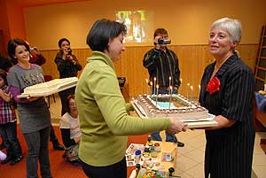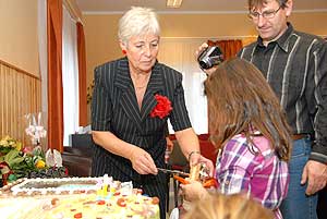 Erdőhátiné Bocskai Zsófia könnyes szemmel és elcsukló hangon mondott köszönetet, mikor meglátta a szülők tortáit, melyen a gyertyákat a gyerekekkel közösen fújta el.