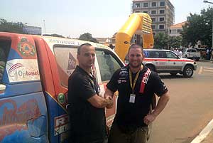 Útvonal: Jan 14. Budapest-Verona 806 km Jan 17. Verona-Rossani 2926 km Jan 18. Rossani-Tata 785 km Jan 19. Tata-Tatooine 553 km Jan 20. Tatooine-Echtucan 533 km Jan 21. Echtucan-Guerguarat 470 km Jan 22. Guerguarat-Bou Lanoar 100 km Jan 23. Bou Lanoar-B2 Beach 250 km Jan 24. B2 Beach-Boutilimit 320 km Jan 25. Boutilimit-Richard Toll 195 km Jan 26. Richard Toll-Velingara 350 km Jan 27. Velingara-Niokolo Koba 347 km Jan 28. Niokolo Koba-Gabu 250 km Jan 29. Gabu-Bissau 210 km