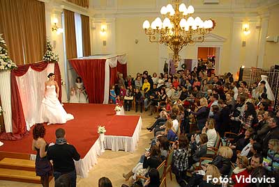 Közel 50 kiállító mutatta be termékeit a VI. Szentesi Esküvő és Baba-mama Kiállításon (2012. február 11-12.), amely ebben az évben is számtalan új programmal és érdekességgel várta a látogatókat. Esküvői ruháktól a férfi öltönyökön keresztül a csodálatos limuzinokig számos csodás érdekességet szemlélhettek a látogatók, nem mellékesen látványos bemutatók kíséretében. Négy menyasszonyi, és egy férfi ruhaszalon mutatta be termékeit a kiállításon látványos keretek között, de olyan programok is akadtak, mint az Esküvői Praktikák, amely során két hölgyet varázsoltak a helyszínen gyönyörű menyasszonnyá. Az esküvői ruha bemutatók mellett egy újszerű program is nagy tömeget vonzott, és igazi élménybombája volt a kiállításnak. A Konty-show-n, egy mesterfodrász hölgy táncosok, fény és hangtechnikai elemek kíséretében varázsolt különleges és extrém hajkölteményeket a színpadon élőben. A rendezvényen készült képeket és a Konty-Show videó összefoglalóját a képre kattintva tekintheti meg!