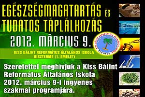 Minden kedves érdeklődőt sok szeretettel várnak a Kiss Bálint Református Általános Iskolába 2012. március 9-i "Egészségmagatartás és tudatos táplálkozás" című ingyenes szakmai programjára. A délelőtt programja: 10.45 – 11.30: Előadás - Egészségmagatartás és tudatos táplálkozás Dr. Szakály Zoltán, egyetemi docens, tanszékvezető Kaposvári Egyetem Gazdaságtudományi kar, Marketing és Kereskedelem Tanszék 11.30 – 12.00: Kérdések az előadóhoz Reformkenyerek és préselt zöldséglevek kóstolása. Katt a képre! Szentes, 2012. 02. 23. Már megvásárolhat a koncertjegy