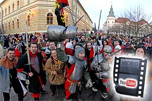Évek óta állandó vendégei a szentesi Télbúcsúztató Karneválnak a szlovéniai busók, de kevesen tudják, hogy szűkebb hazájukban, Ptuj városában és környékén idén 52. alkalommal rendezte karnevált. A város, a rendezvény minőségének és léptékének köszönhetően, évek óta tagja az Európai Karneválvárosok Szövetségének, ami igen komoly rangot jelent. A szentesi csoport tavaly már bemutatkozott Szlovéniába és a korhű lovagi vérteknek valamint a tűzfújóknak köszönhetően olyan jó benyomást tettek a szervezőkre, hogy idén ismét szívesen látták a kalandozó magyarok kis csapatát. Katt a képre! Szentes, 2012. 02. 28. Folytatódik a Szentesi Dumaszínház